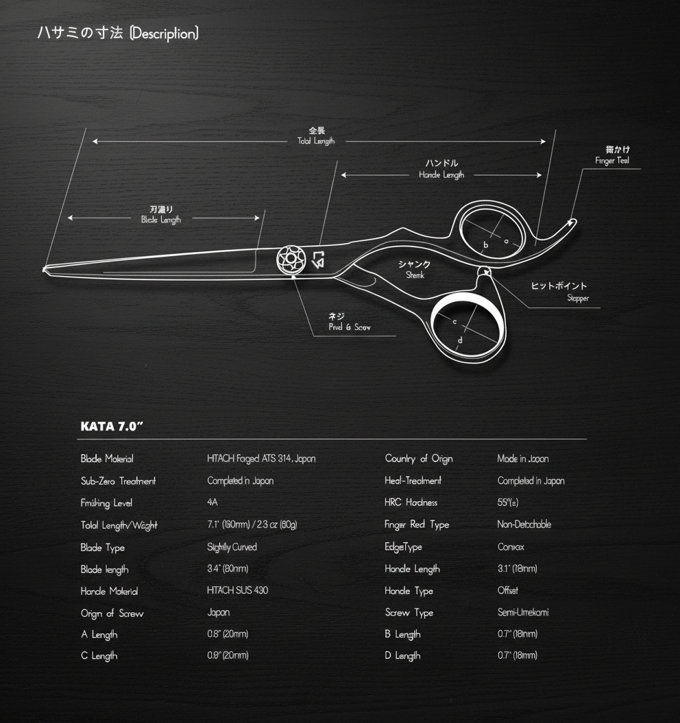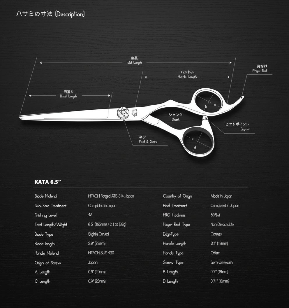 The KATA is a well-balanced, lightweight scissor that allows stylists to perform with effortless control. An offset handle with a bent thumb ring will naturally fit most hands. Capable of both wet and dry cutting as all-around scissors.