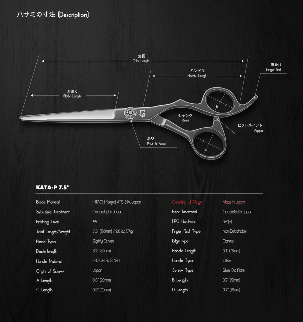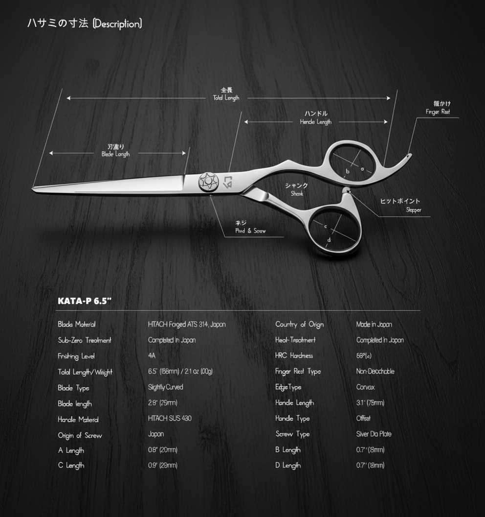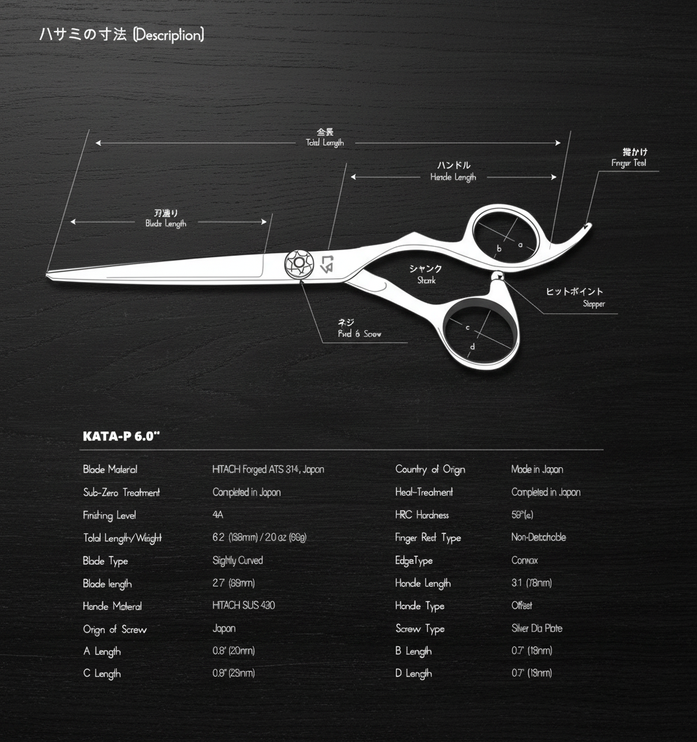 The KATA-P is a well-balanced scissor that allows stylists to perform with effortless control. An offset handle with a bent thumb ring will naturally fit most hands. Capable of both wet and dry cutting as all-around scissors.
