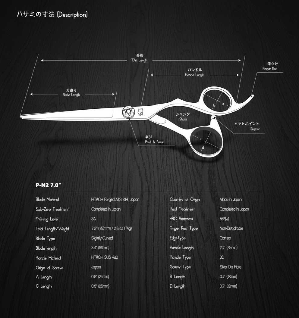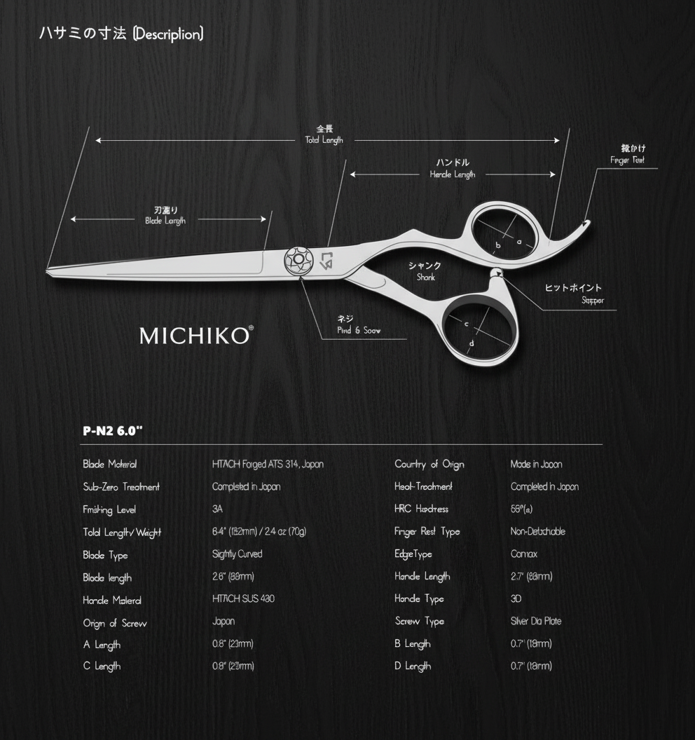 The P-N2 is MICHIKO's original 3D handle design cutting scissors. The well-balanced design allows the stylists to perform with effortless control. A 3D handle with an ergonomically bent thumb ring and extended finger rest will naturally fit bigger hands. Excellent for wet cutting but also capable of dry cutting as well.