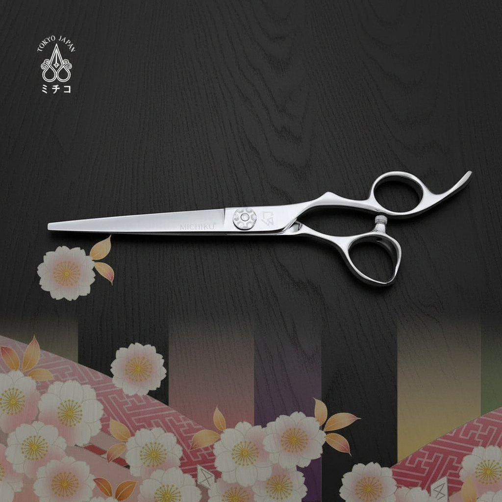 The KAMI is MICHIKO's original handle design cutting scissors. Japanese forged ATS314 blade allows the best blunt cut and all-around cutting techniques on wet and dry hair. The ergonomically designed handle provides more comfort and control but less tiredness while cutting.