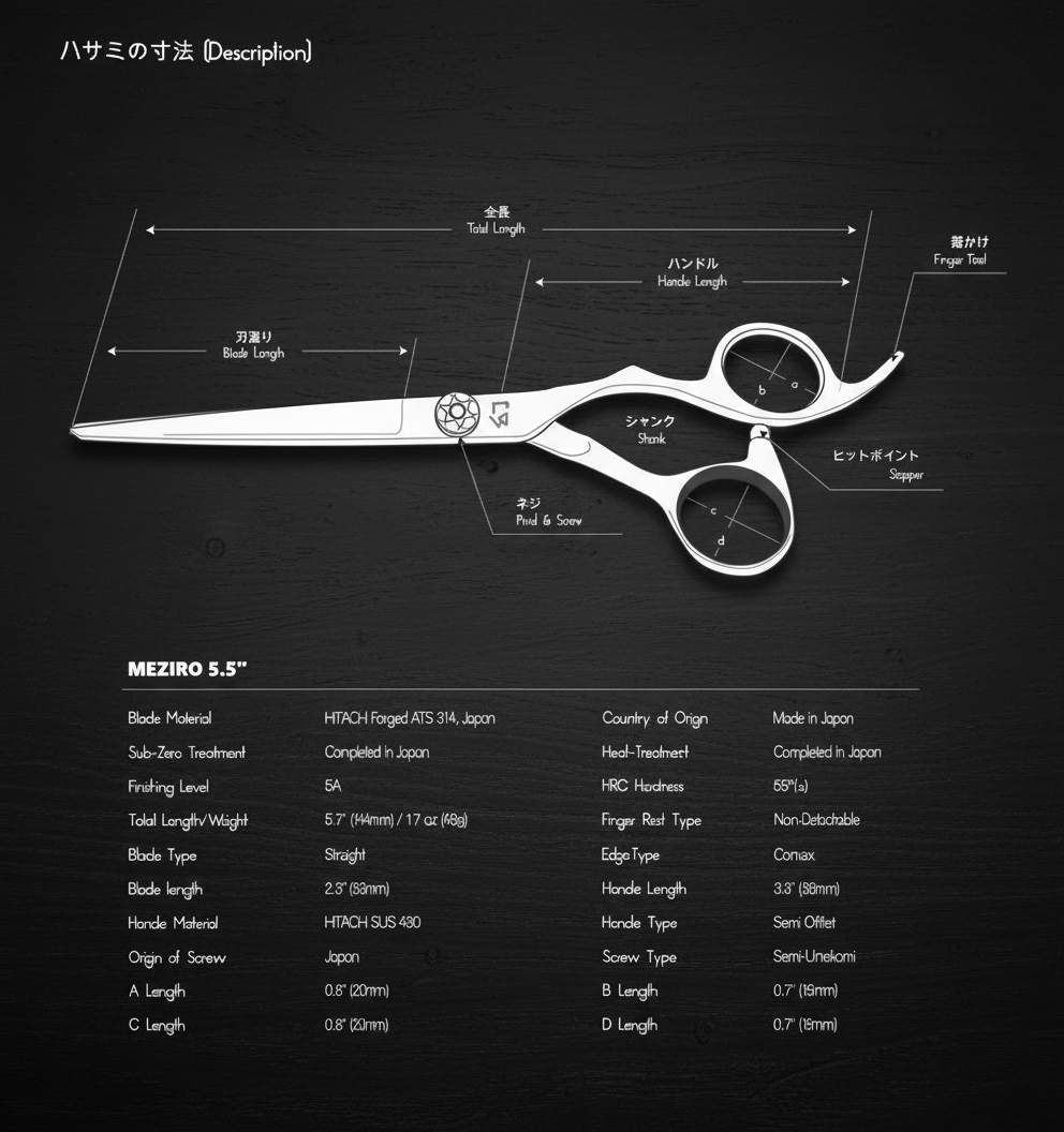 MEZIRO 5.5L Lefty Hair Shears – Comfortable and Balanced for Left-Handed Stylists