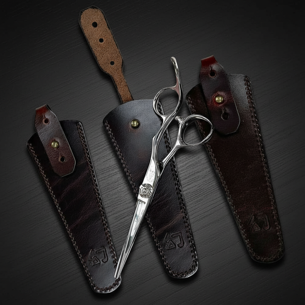 Enhance your hairstyling experience with a premium leather case hat not only protects your valuable shears but also adds a refined touch to your professional toolkit.