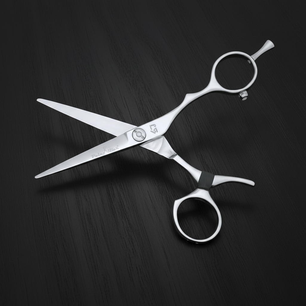 The DUKE is a Painkiller Regular Line. 5.0" short blades work nicely with precision cuts. Painkiller shears' flexible thumb ring saves cutting time by holding the comb and shears together without pulling your thumb out between cuts.