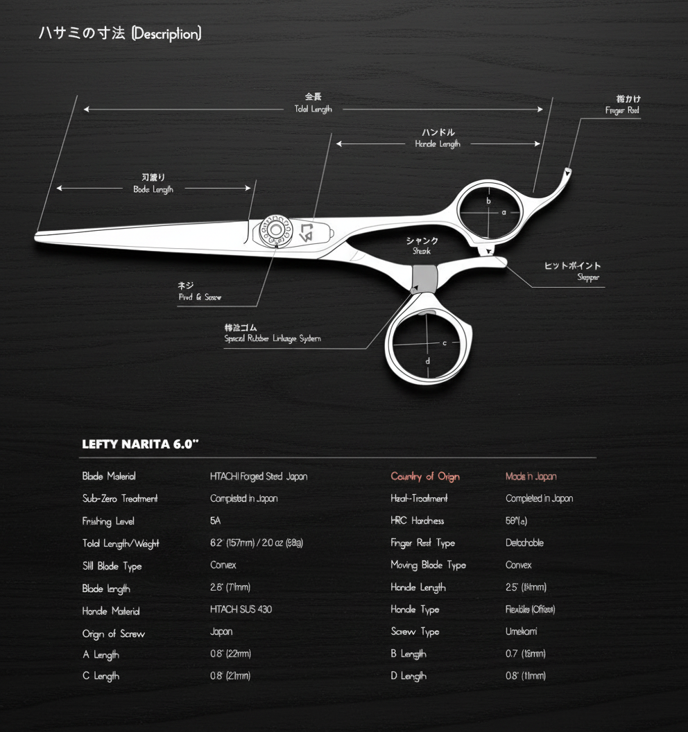 LEFTY NARITA 5.5" Hair Shears – Sharp and Balanced for Left-Handed Stylists