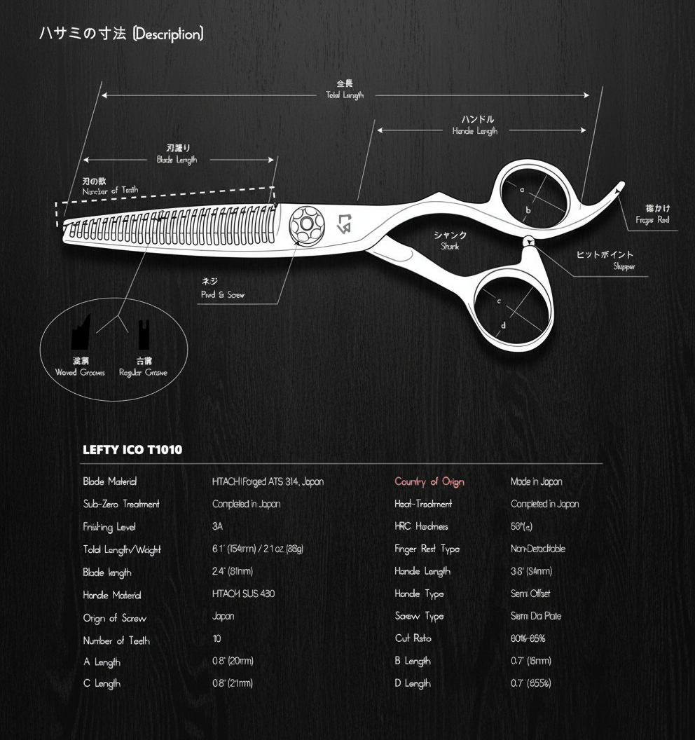 LEFTY ICO T1010 Best Japanese Lefty Texturizing Shears for Professionals