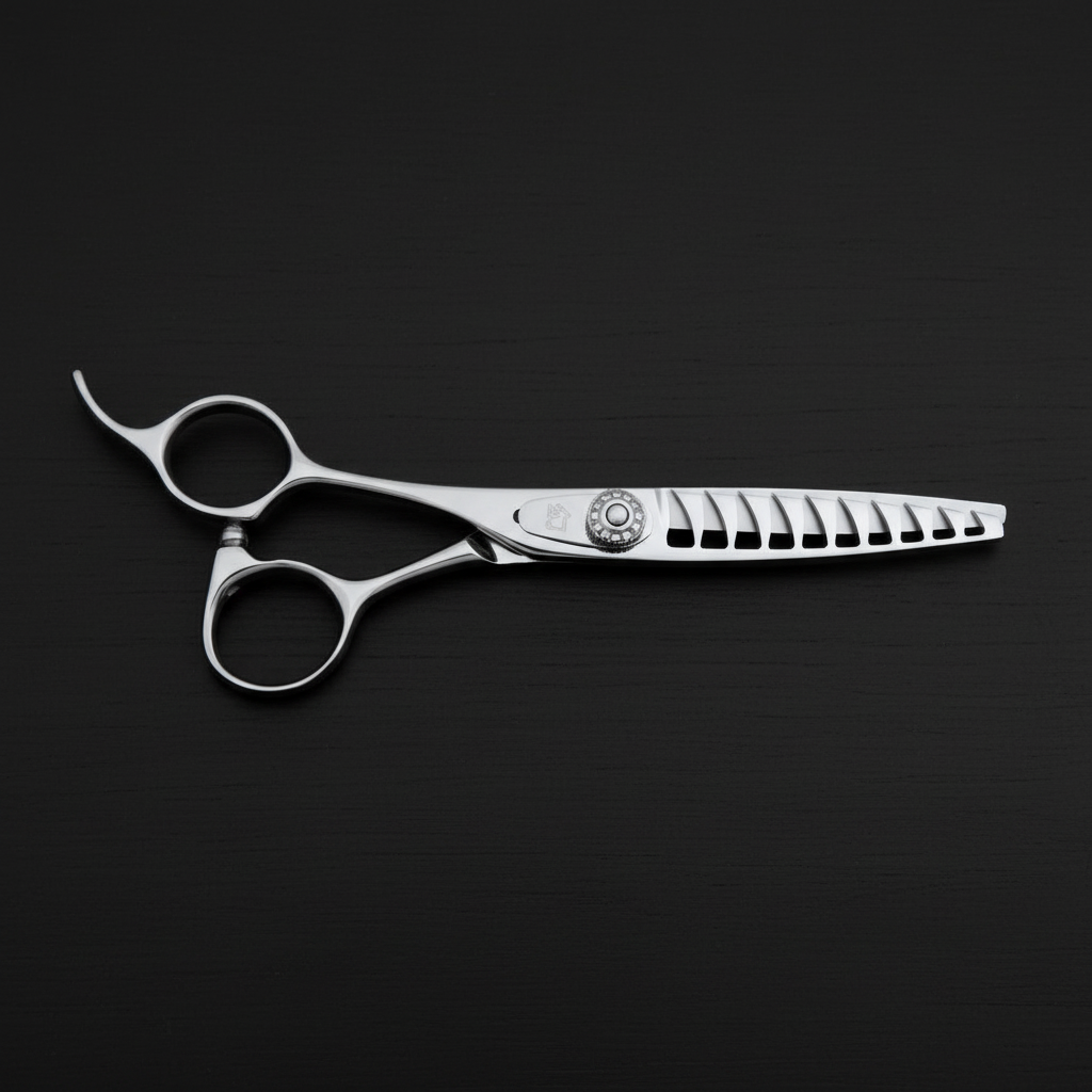 The LEFTY ICO T1010 is a 6-inch 10-teeth texturizer that removes 60%~65% of hair. Each tooth has ten waved grooves which help blend hair after the cut.