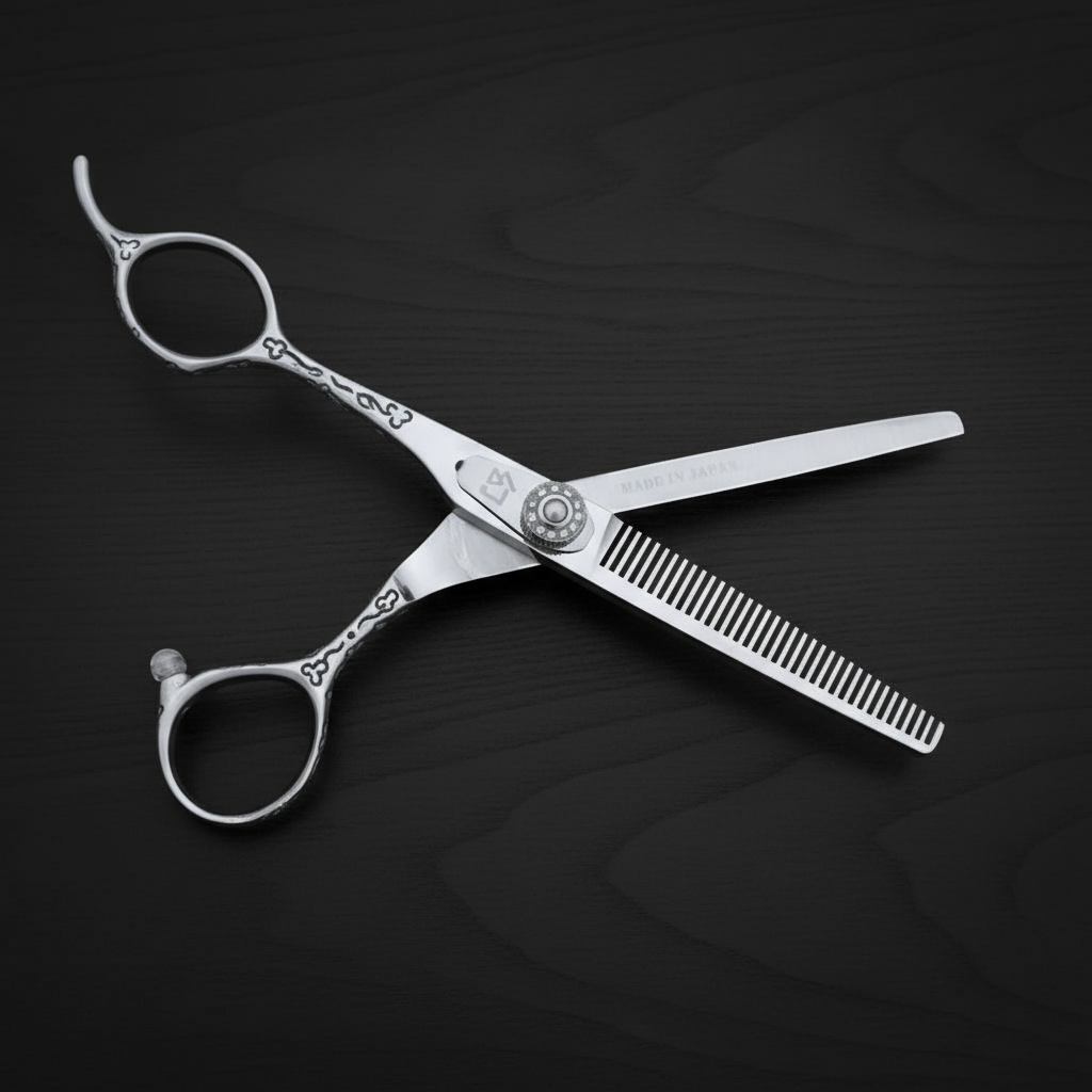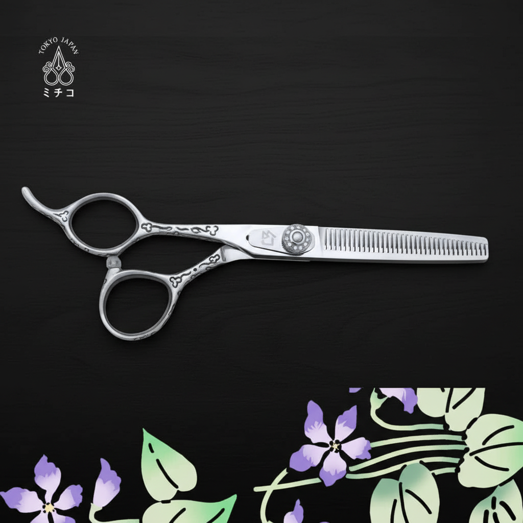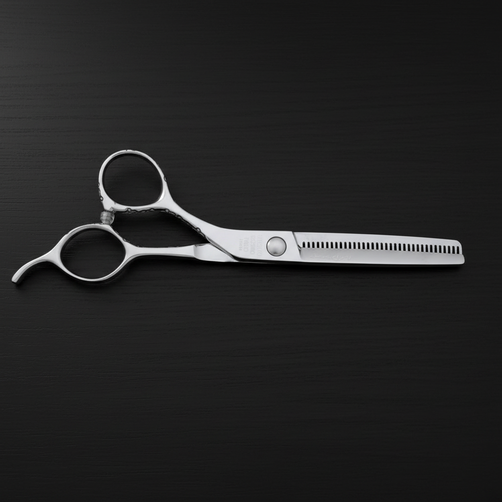 The COSMO T6035 is a 6-inch 35-teeth thinner that removes 20%~25% of hair. lightweight with a unique carved offset handle.