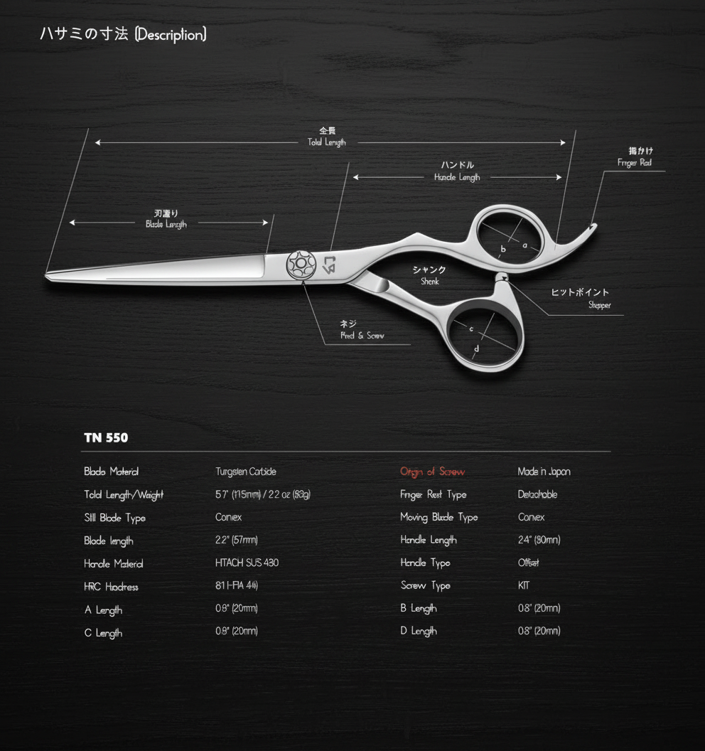TN 550 Premium Dry Cutting Shears for Precision Haircuts