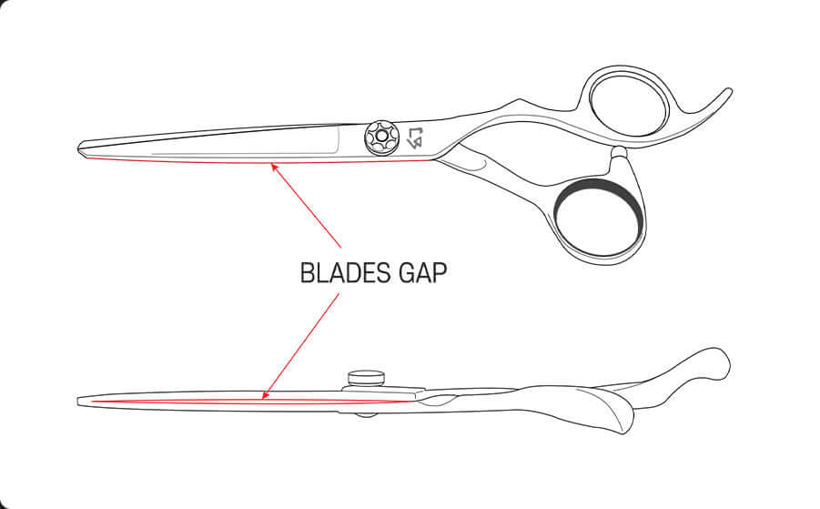 All scissors are pivoted together under tension with a gap between the two blades. Since sharpened edges slide against each other to cut an obiect, the gap is essential. particularly for hairdressing scissors.