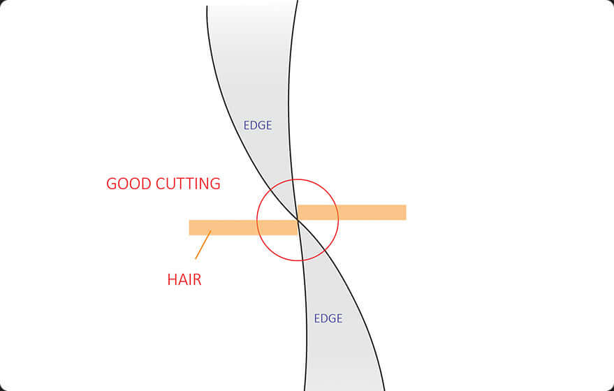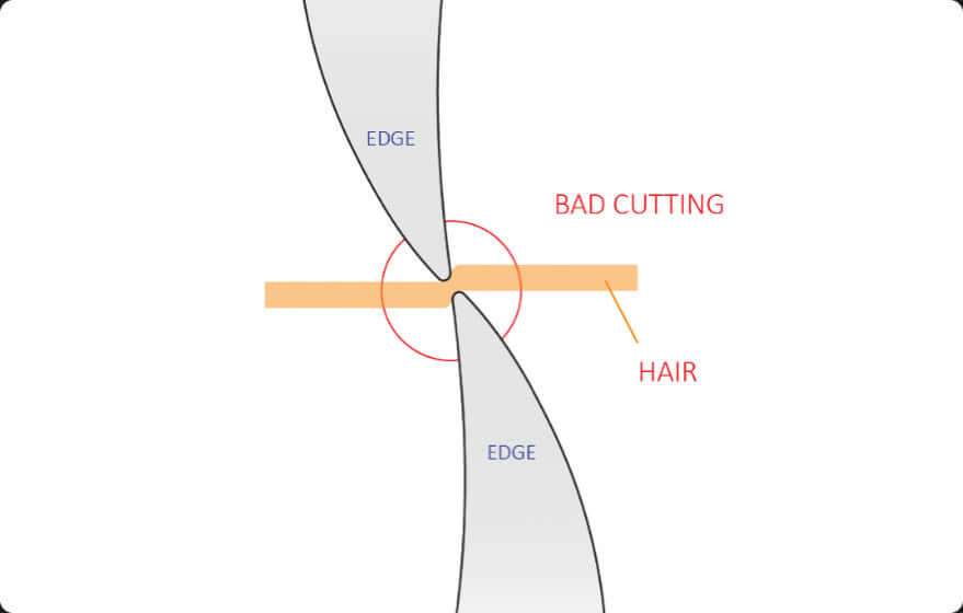 When the edge thickness is more than 5 microns, the scissors start to push or bend hair, resulting in damaged hair. This is the time for the sharpening service.