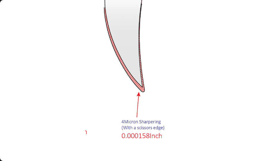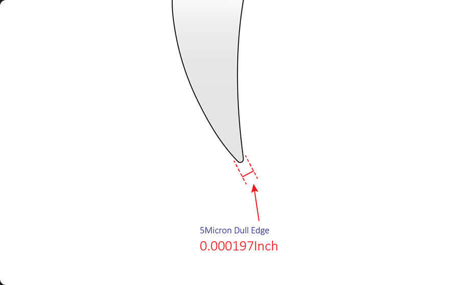 The thickness of the blade edge is 1 micron or less, which may begin to wear out over time.