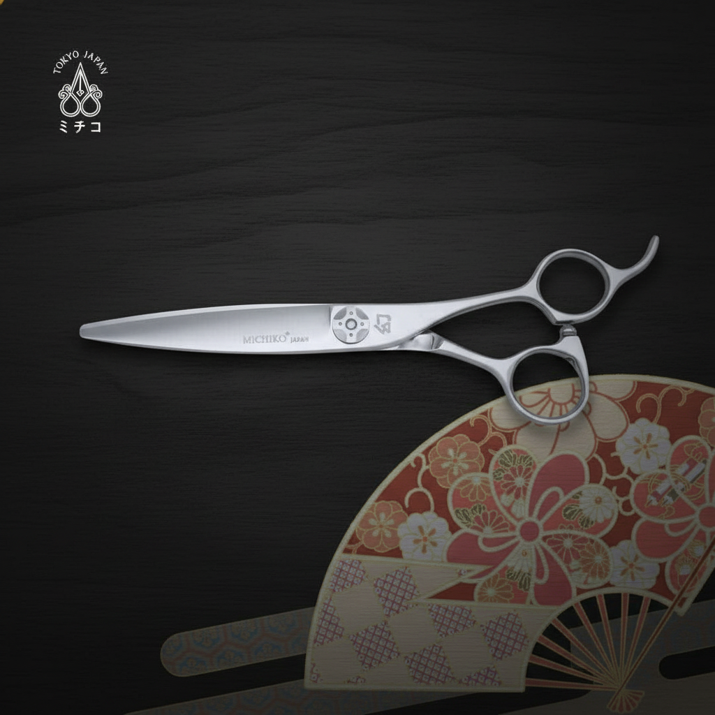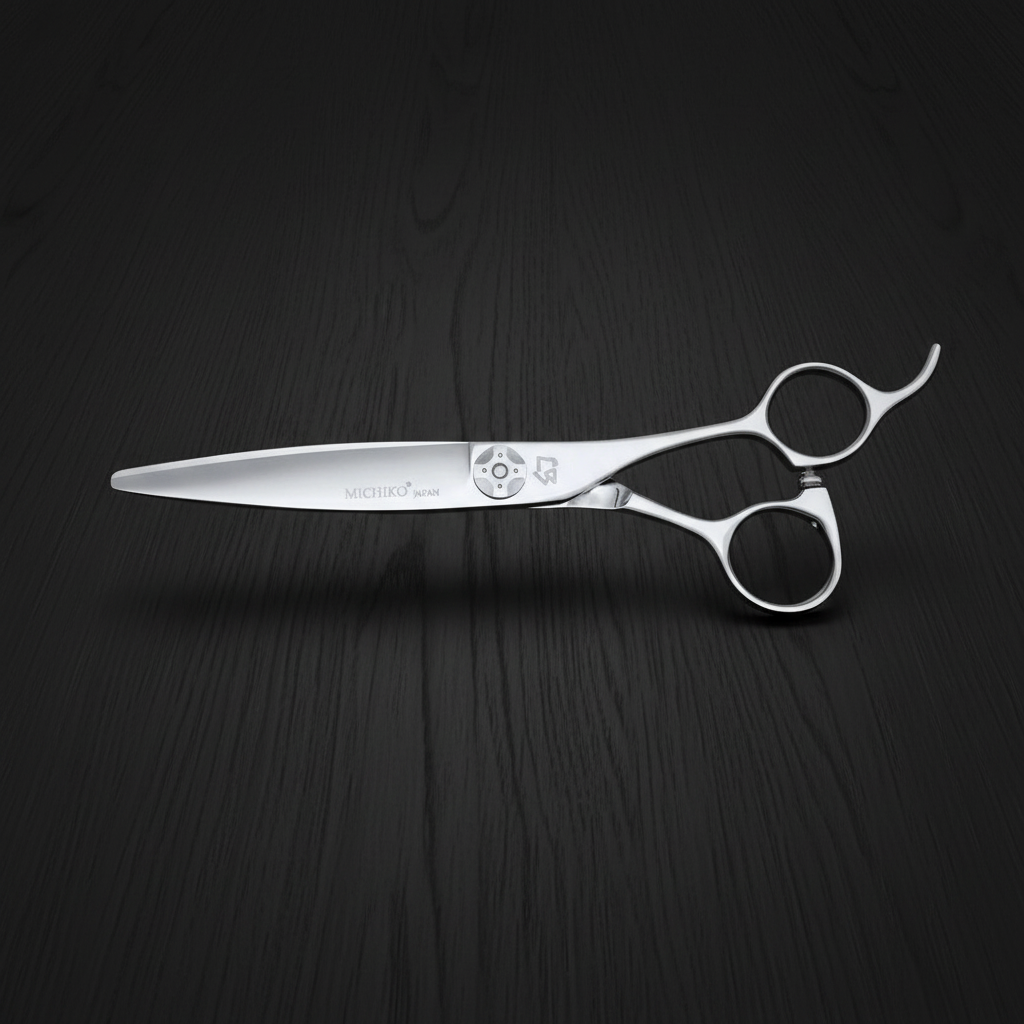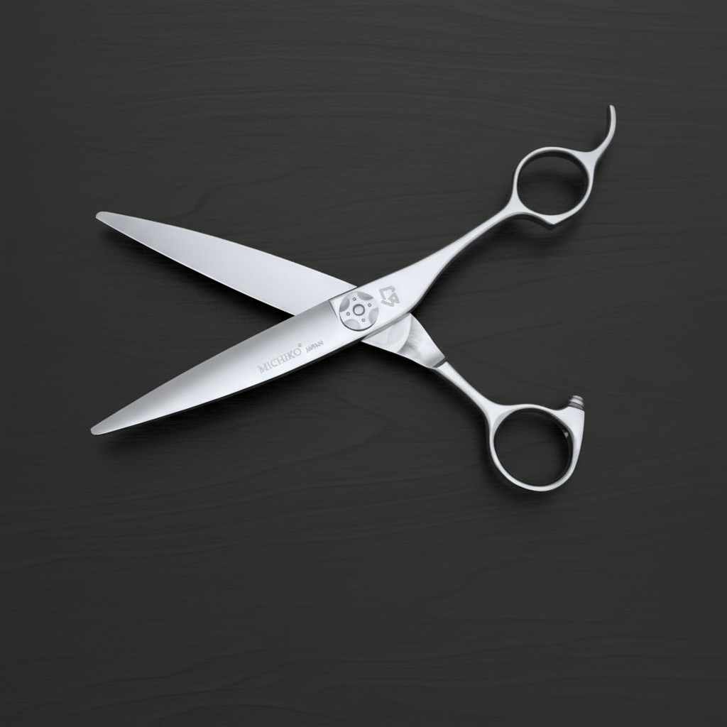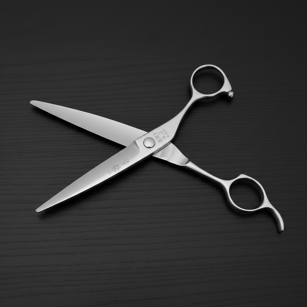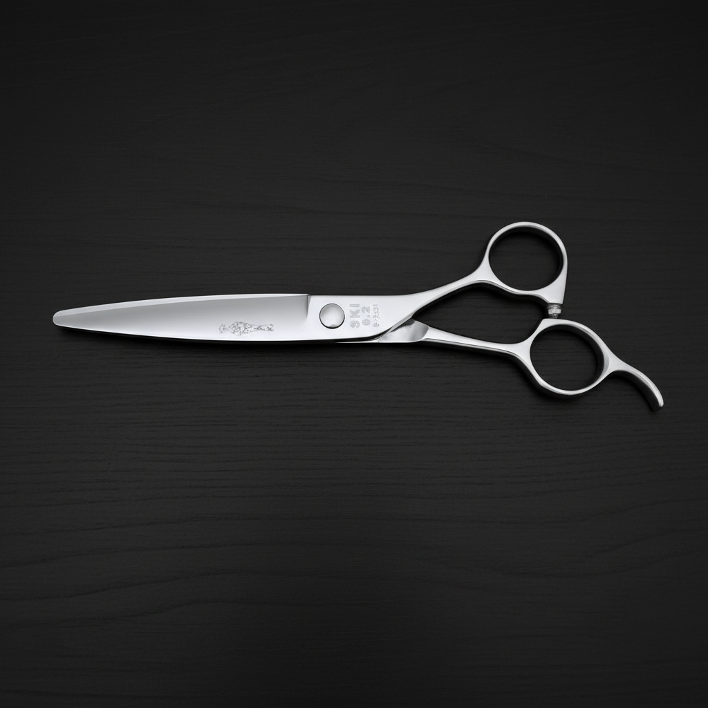 The SKI 6.2 is wide leaf-shaped blade scissors with a slight offset handle. A more curved cutting edge performs a smooth slide cut. 6.2" length.