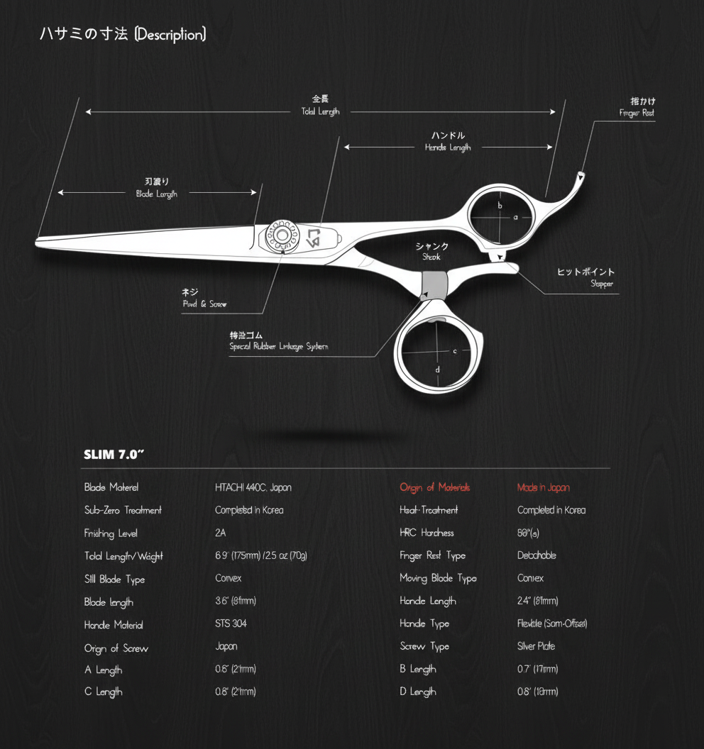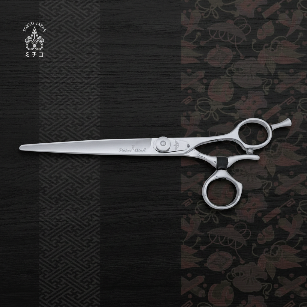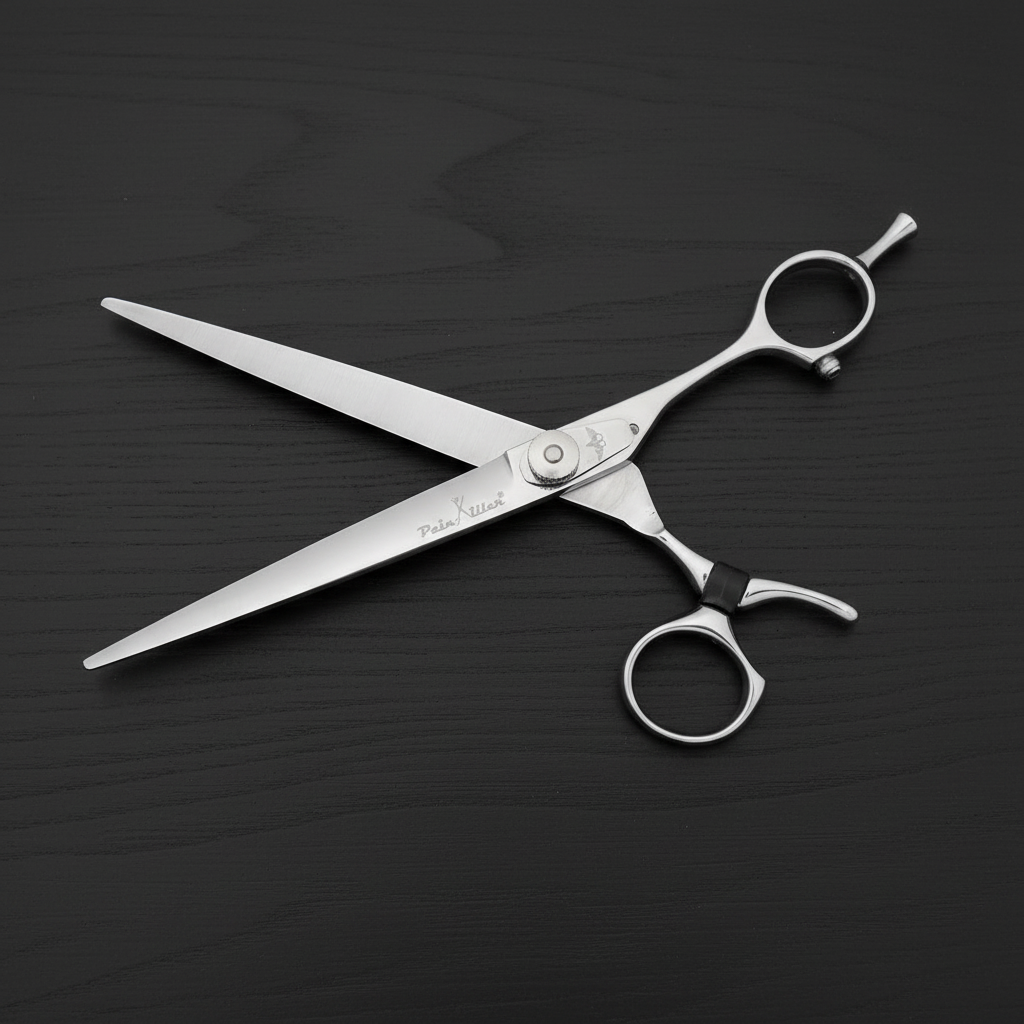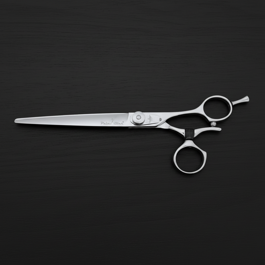 The SLIM is one of the best-selling all-around cutting scissors from the Painkiller Regular Line series. Painkiller shears' flexible thumb ring saves cutting time by holding the comb and shears together without pulling your thumb out between cuts.
